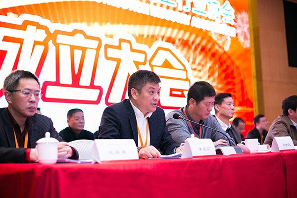 (會長李延明先生在成立大會上致辭)
